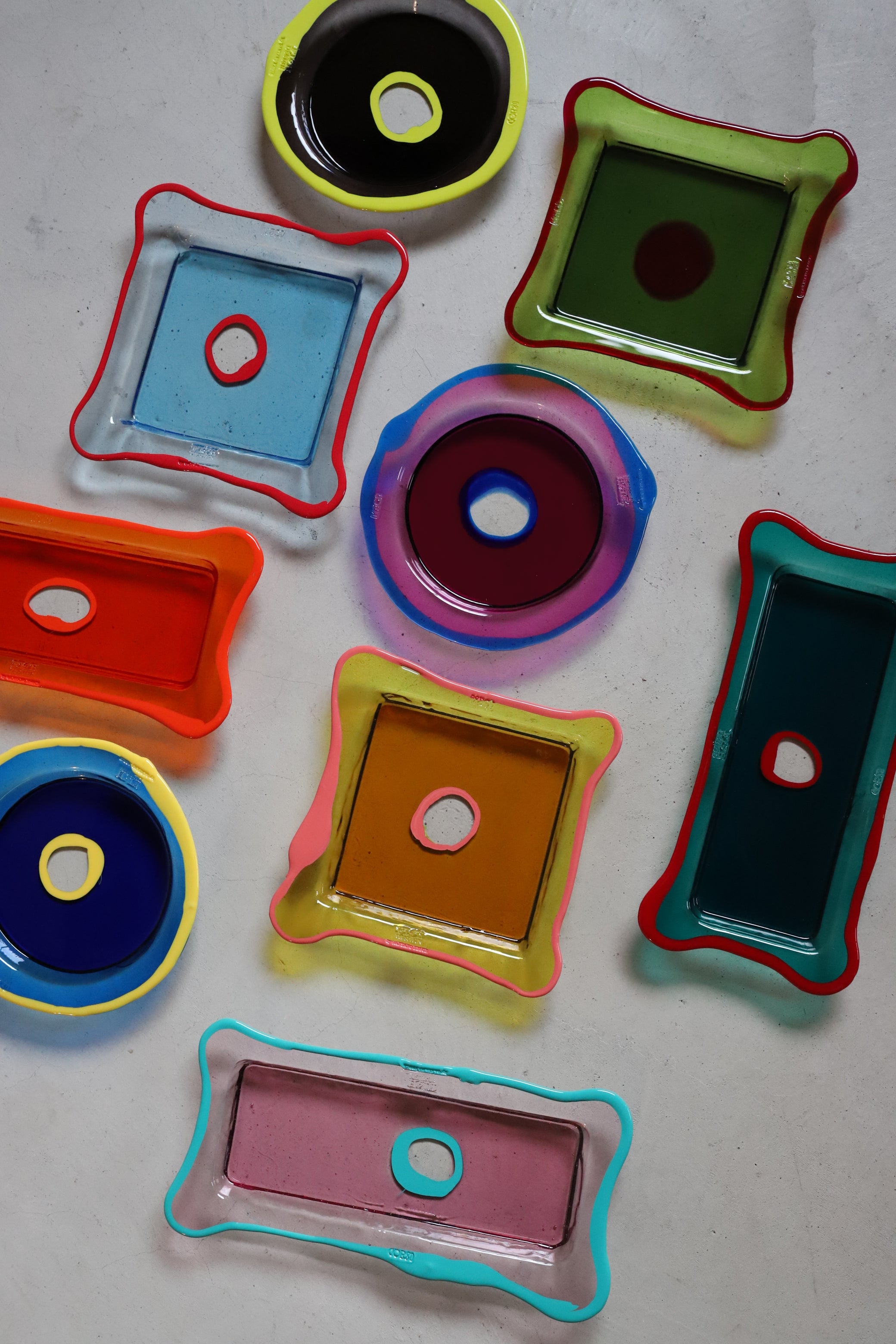 創業者アンドレア・コルシが、ガエターノ・ペッシェとの出会いにより立ち上げたCorsi Design。彼らは多様な技法を駆使して樹脂を加工することにより、独創的なアイテムを製作することに成功しました。製品は全てハンドメイドで、環境に優しい非食用ポリウレタン樹脂を使って、今も尚イタリアの職人達が作り続けています。一見ガラスの様に見えますが、割れる心配もありません。